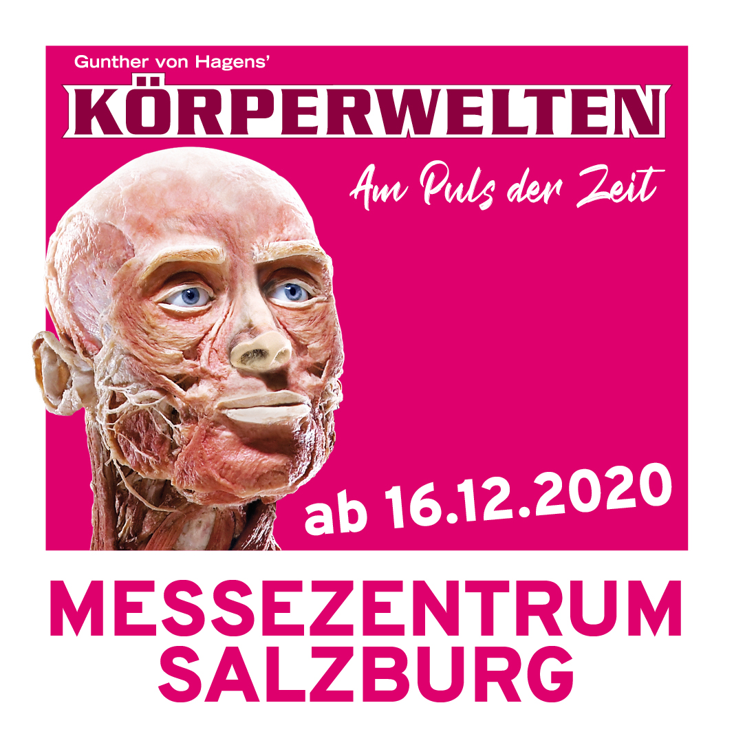 Endlich kann es weitergehen bei der Salzburger Ausstellung „KÖRPERWELTEN – Am Puls der Zeit“ im Messezentrum (Halle 4)! Im Zuge des Corona-Lockdowns musste die bekannteste Anatomie-Ausstellung der Welt am 26. Dezember nach nur neun Öffnungstagen vorübergehend schließen. Am Montag, 8. Februar 2021 öffnen sich die Tore wieder täglich! Und nicht nur das: Die Ausstellungszeit, die ursprünglich bis 7. März ging, wird bis zum 25. April 2021 verlängert. In allen Ausstellungsbereichen ist das Tragen einer FFP2-Maske für Besucher ab 14 Jahren verpflichtend. Kinder ab 6 Jahren (und unter 14 Jahren) müssen stattdessen einen Mund-Nasen-Schutz (MNS) tragen. Ausgenommen sind in beiden Fällen Personen, denen das Tragen einer FFP2-Maske bzw. eines MNS aus gesundheitlichen Gründen nicht zumutbar ist. Hier ist auf Nachfrage ein entsprechender Nachweis vorzulegen (z.B. ärztliche Bestätigung). Nähere Infos finden Sie unter Informationen zum Coronavirus